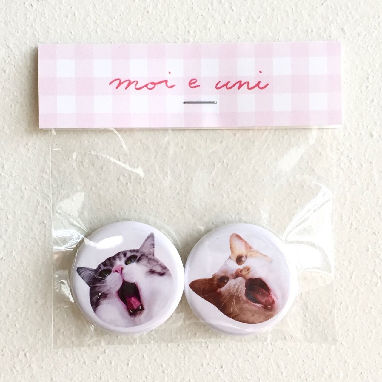モイとウニのあくび顔を缶バッジにしました。