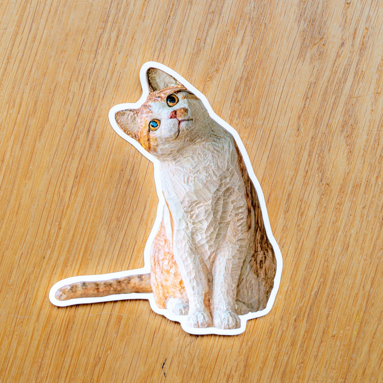 彫刻家はしもとみおさんが2022年初頭に完成させた近藤研二の愛猫ウニの木彫がステッカーになりました。